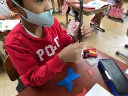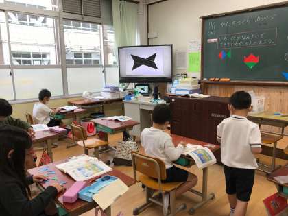 算数のかたちづくりの力をレベルアップするために,NHKの番組を見なが蝶ネクタイの形を作ってみました!
