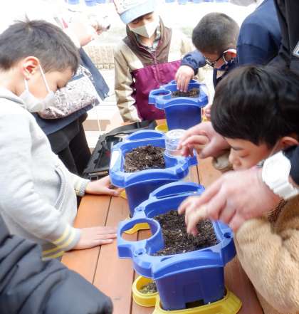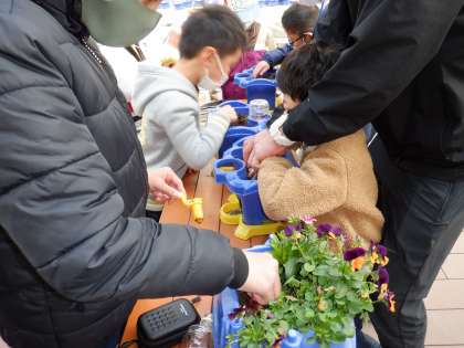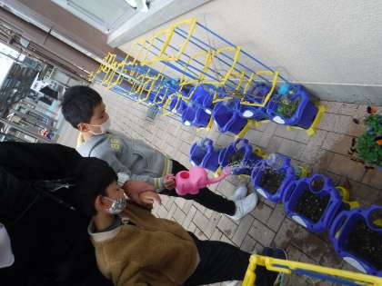 春に向けてそらいろの1年2年6年生はチューリップの球根を植えました!卒業に向けて6年生は毎年寄せ植えをしています。今年は,ビオラとナデシコとチューリップです。水やりもたっぷりしました!植えていると3年生も見に来て去年植えたことを思い出していました。