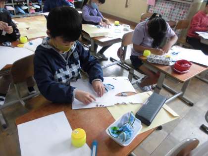 版画でいよいよザリガニの形を作っていきます。