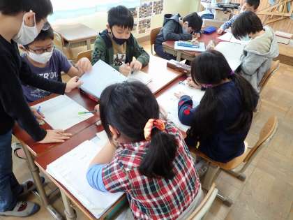 総合では,グループごとにクラスに分かれて活動しています。
