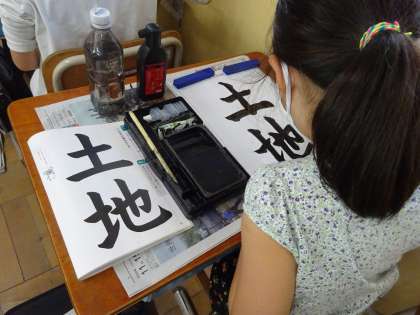 今日は「土地」という文字を書きました。