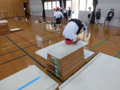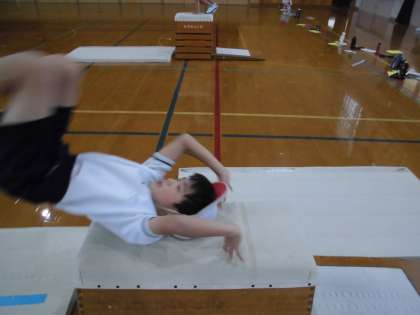 前転がり(台上前転)にも挑戦しています。