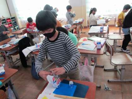 おもちゃ作りの説明の仕方を学んだあとは,自分たちでオリジナルのおもちゃを作り,その作り方の説明書を書きます。