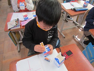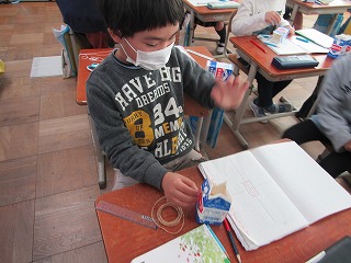 国語の学習で,おもちゃ作りの説明書を書く学習をしています。