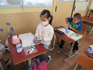 自分たちで工夫して,おもちゃを作っています。