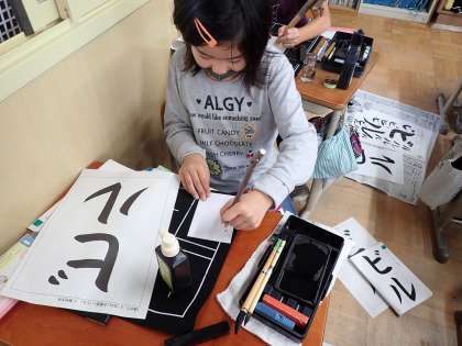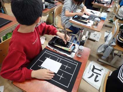 習字終わりの墨汁を使って,画用紙にいろいろかいてみました。