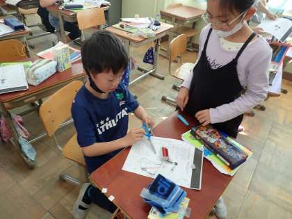 理科では,どんなものが電気を通すのか実験して調べました。