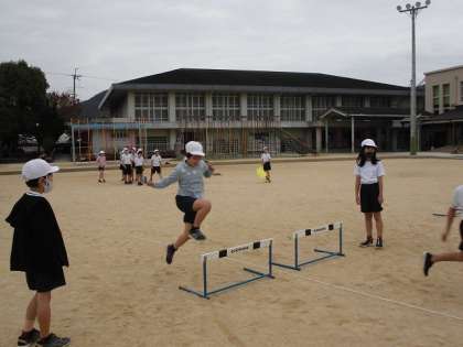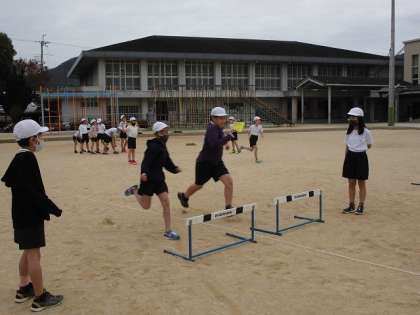 歩幅やリズムなどに気を付けながら,ハードル走に取り組むことができました。