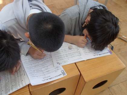 木琴・鉄琴に加えて,アコーディオンなどもあり,苦戦しながらも頑張って取り組んでいます。