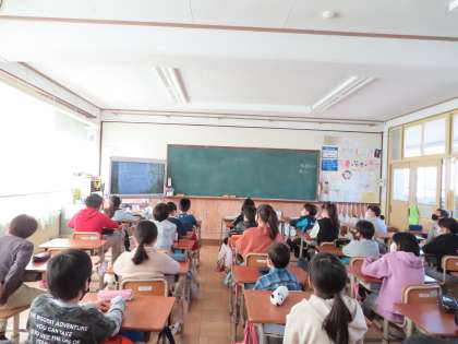 教室での朝会となりましたが,しっかり校長先生の話を聞いていた5年生でした。すばらしいです。