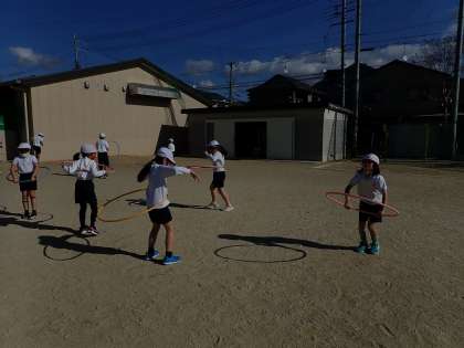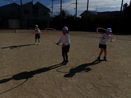 フラフープを飛んだりくぐったり