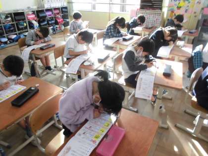 新しいかん字の練習をしています。
