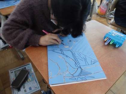 細い線を残しながら彫るのに苦戦している子もいましたが,少しずつできてきました。