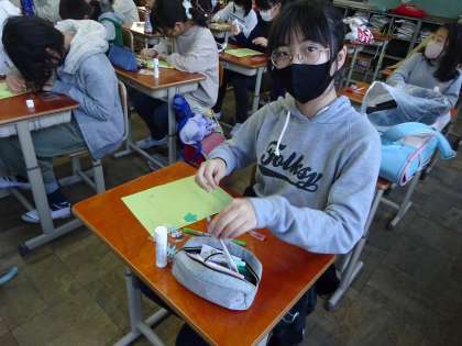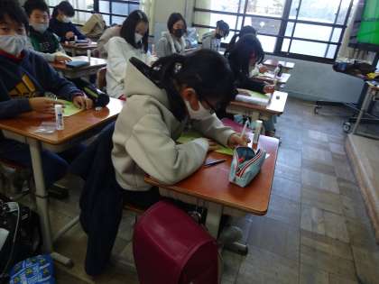 英語では,英語の文字を書いて,クリスマスカードを作りました。