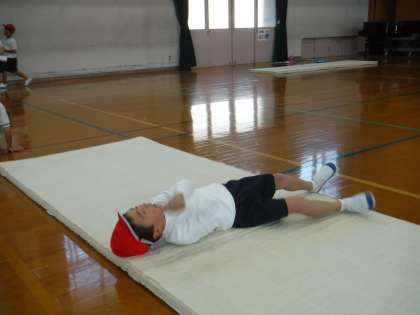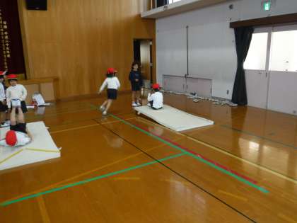 今日は「マット遊び」最後の授業でした。最初,それぞれの場で練習した後,担任の先生に見てもらいうまくできたらシールをはってもらいました。