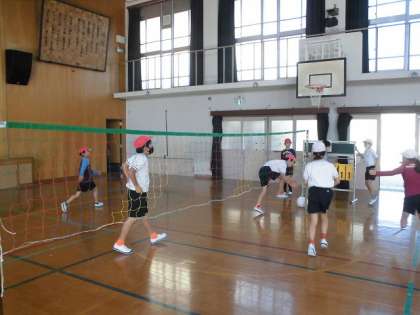 4年生の体育科「ソフトバレーボール」の学習の様子です。