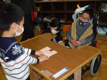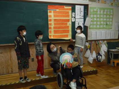 みんなでハッピーバースデーの歌を歌ってその後,プレゼントのカードを渡しました。