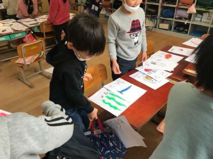 本バックをエコバッグ替わりにして,さかなやさんでさばをかったり,お花屋さんでヒマワリを買ったり,子どもたちはたのしく学習ができました!
