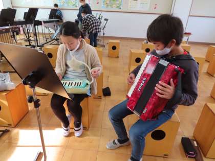 今までパートに分かれて練習していましたが,いよいよみんなで合奏です。他のパートの友だちがどんな演奏をするのか,やっと聞けて楽しかったですね♪