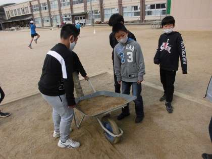 授業の最後に砂場へ行き,土を運ぶ体験をしました。
