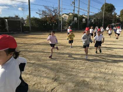 今日の体育は,学年体育でみんなで運動場を走りました!