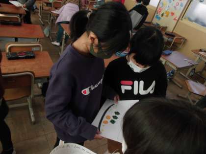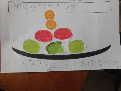 英語活動でのオリジナルサラダを見せてもらいました。みんな素敵なサラダでした♪