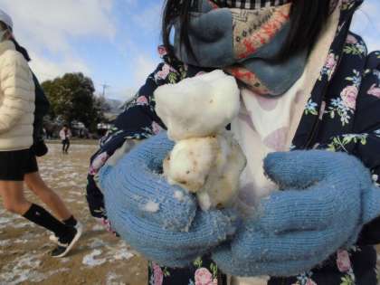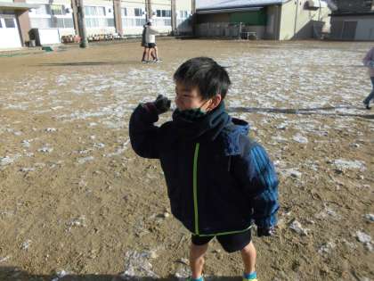 今日は雪が積もり,朝から大喜び!