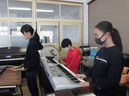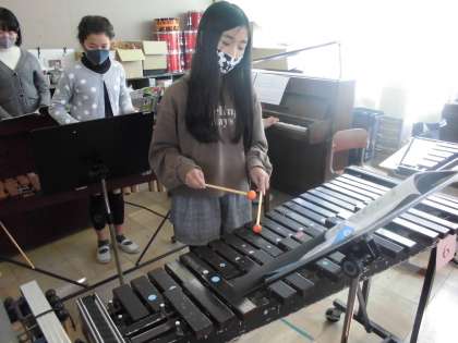 音楽の学習では「風を切って」という曲を合奏を練習しています。