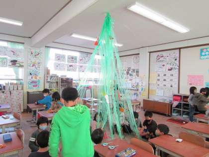 皆で大きなツリーを作りました。