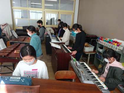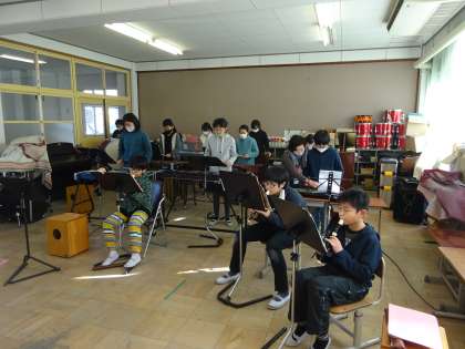 音楽では,合奏を練習していました。