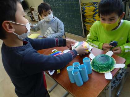 ミニミニしんけいすいじゃくのコーナーでは,やり方を優しく教えてもらいました。まっぼっくりけんだまは,コーナー担当のお友だちやM先生が「こうするといいよ!」と