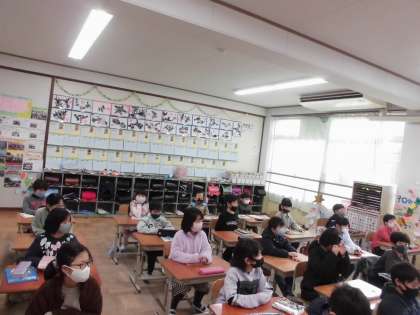 子どもたちは画面に注目し,静かに校長先生の聞けていました。