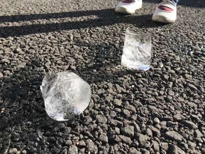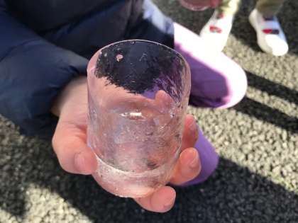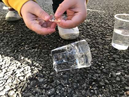 子どもたちは寒い中でも,楽しそうに氷をさわっていました♪