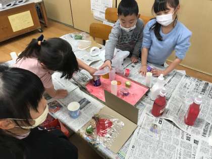 子どもたちは,もってきた材料を使って楽しくぺったんぺったんしていました☆
