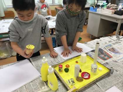 野菜やカップの形も色々で,友達の作品を見ながら「これいいね!」「うわ!すごい!」と自然とほめあう様子が見られました…♪