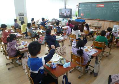 少しでも楽しい給食時間にしたいとの思いから,給食委員の子どもが主体となり手話の動画をつくりました。