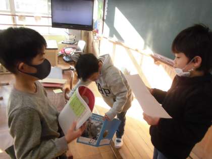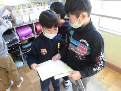 国語でのお話をつくる学習で,友だちからのアドバイスも参考にしています。