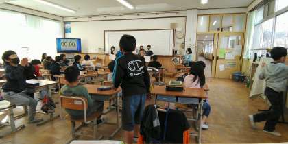 描いた絵を見せて,クイズを出していました。