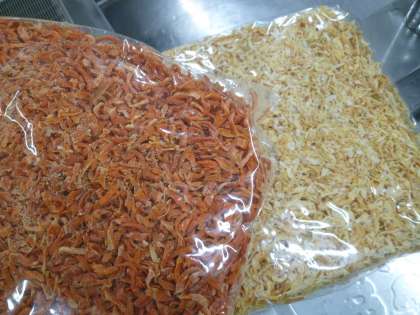 ※写真は本日使用したアルファ化米と乾燥野菜,そして災害時にも食事を準備できるセットの展示の様子です。