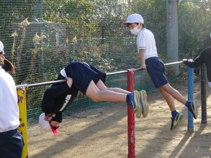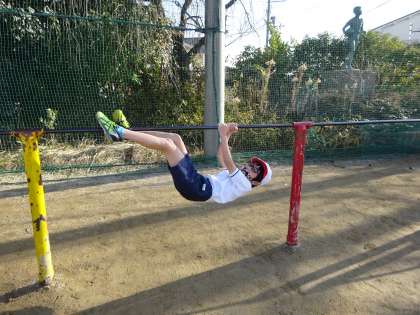 今日は体育でなわとびと鉄棒をしました。