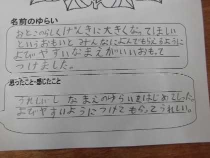 「知らなかったな」「自分の名前が好きになった」と自分の名前の大切さを感じていました。