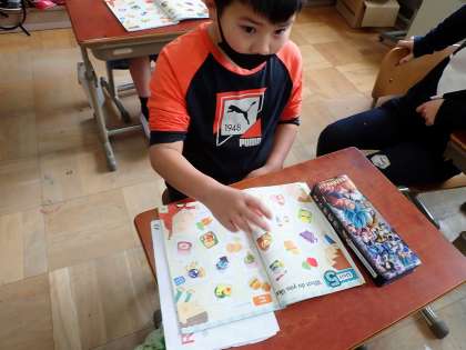 ALTの先生が来てくださっていたので,おはじきゲームを通して