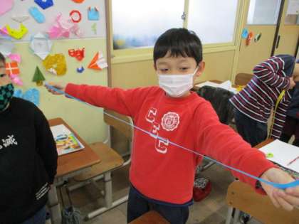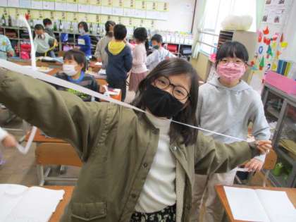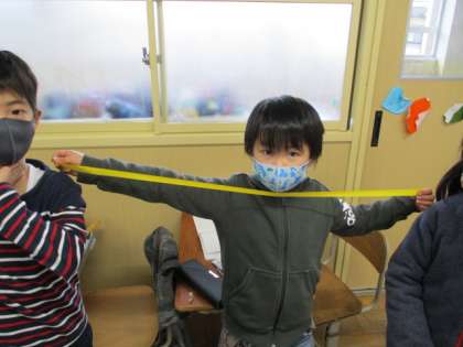 前の時間に自分の腕の長さをはかっているので,大体これくらいかな〜と予想ができました。