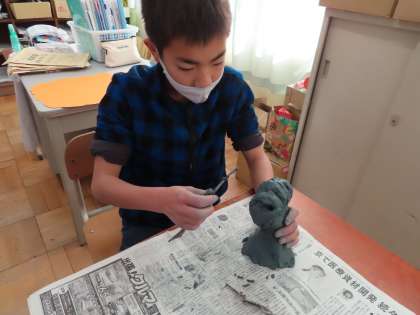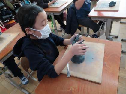 出来上がった作品は少し乾燥させて,次回は布を使って磨きます。どんな作品(見た目)になるのか…楽しみですね。