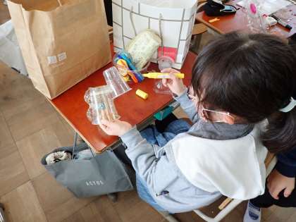 油性ペンで色を塗ったり,セロハンテープで貼りつけたりして