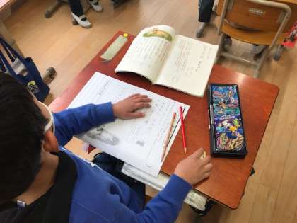国語の学習で,どうぶつの赤ちゃんをしています。