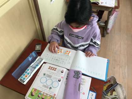 「おさらに一つずつ分けるといいよ!」とみんなで話して,解決していっています!