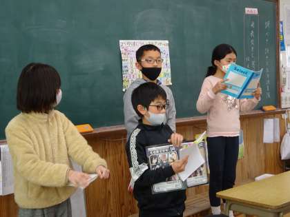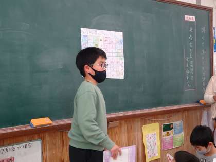 国語科で,クラスのみんなにアンケートをとり,調査したことを発表しました。休日どんなことをしているか,どんな習い事をしているかなど,みんなの生活について知りたいことを調査し,発表しました。