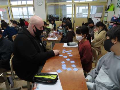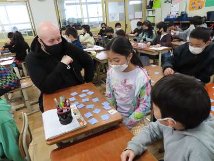 今日は,ALTの先生と一緒にカードマッチングゲームをしました。ゲームを通して,人を紹介する表現に慣れ親しめてきているようです。