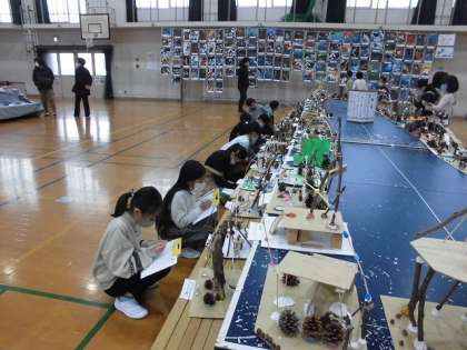 今日,4年生のみんなで図工展の鑑賞に行きました。